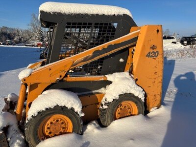 2005 Case 420 skidsteer, 56 horsepower, 5900 lb. operating weight, 1850 lb. lift capacity to full height, Auxiliary boom hydraulics, Overall hours...