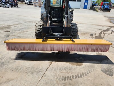 NEW/DEMO Broomer 10 foot push sweeper broom, Universal skidsteer quick-attach with mechanical swivel, Polypropylene bristles, 10 tracks of bristles,...