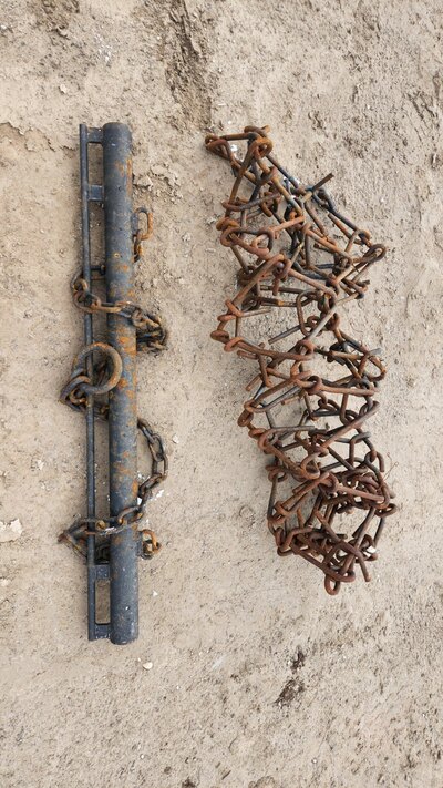 BRAND NEW Hackett 4' x 4' chain harrows, 4' drawbar, 1/2" x 3.5" tines, sixty total steel...