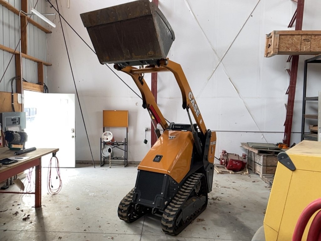 2024 CASE TL100 Mini Track Loader, 36 inch narrow track width with 7 inch tracks, Kubota 24.8 horsepower diesel engine, ISO Pilot Joystick Control, Auxiliary hydraulics, 36 inch bucket with bolt-on cutting edge, 3536 lb. operating weight, 1000 lb. lift capacity to full height