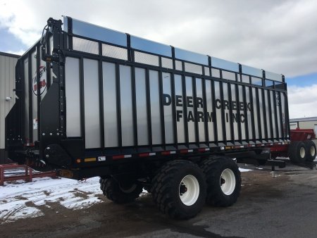 Dual Hydraulic Geardrive System offers efficient, fast unloading with NO ROLLER CHAINS / big 2 3/8" driveshaft! (semi trailer pictured)