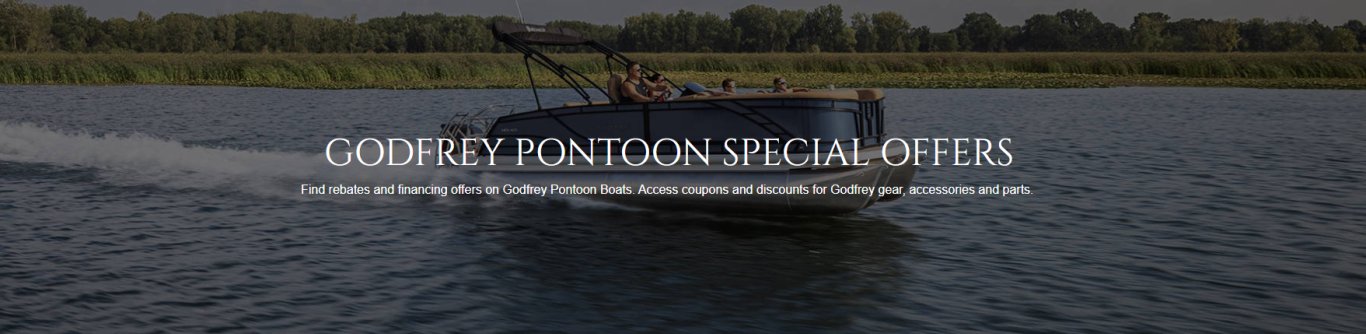 “From April 1st to May 1st 2025, Lock in special savings when you purchase any in-stock or special order Godfrey Pontoon, Hurricane Deck Boat or Hurricane Fundeck. Some conditions apply, see dealer for details”