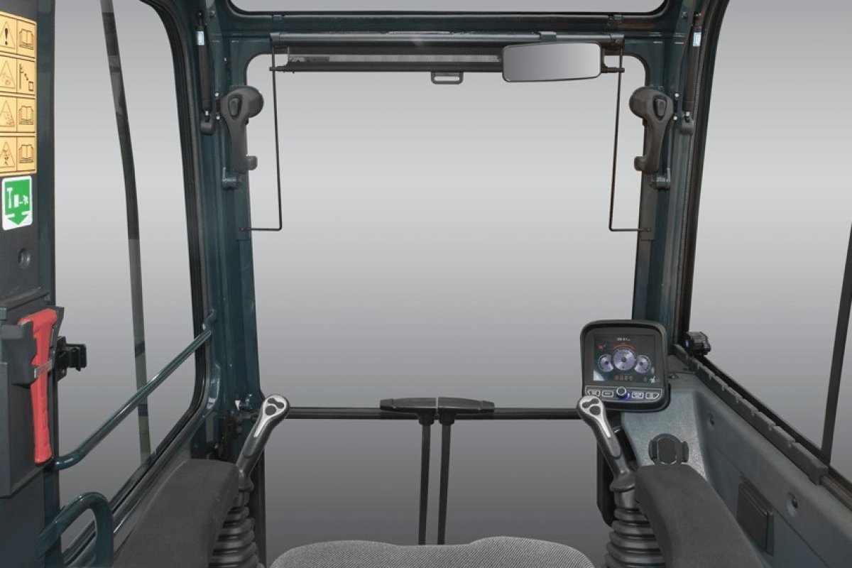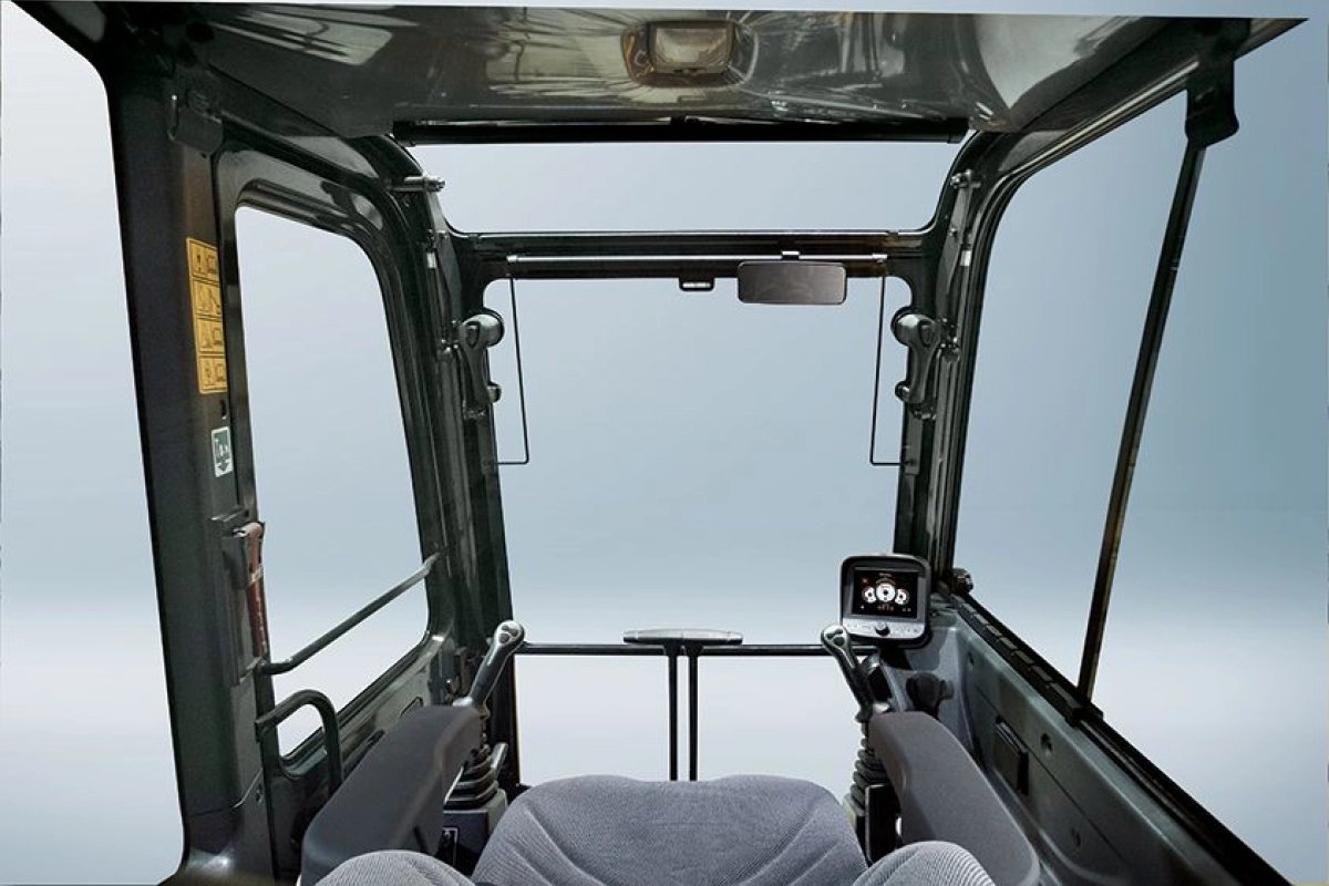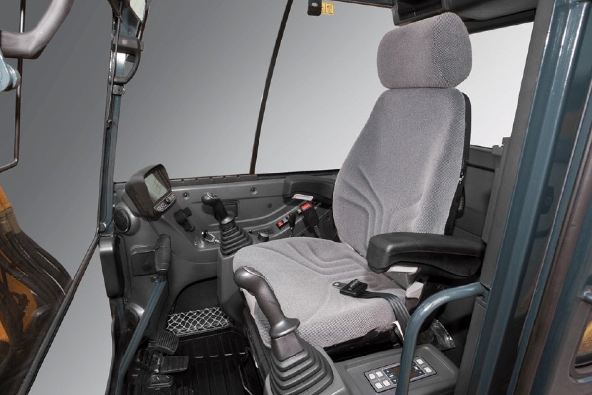 The R60CR-9A operator's cab is designed for a comfortable operating experience. An ergonomically designed suspension seat, adjustable arm rests and a spacious environment helps to minimize operator fatigue.