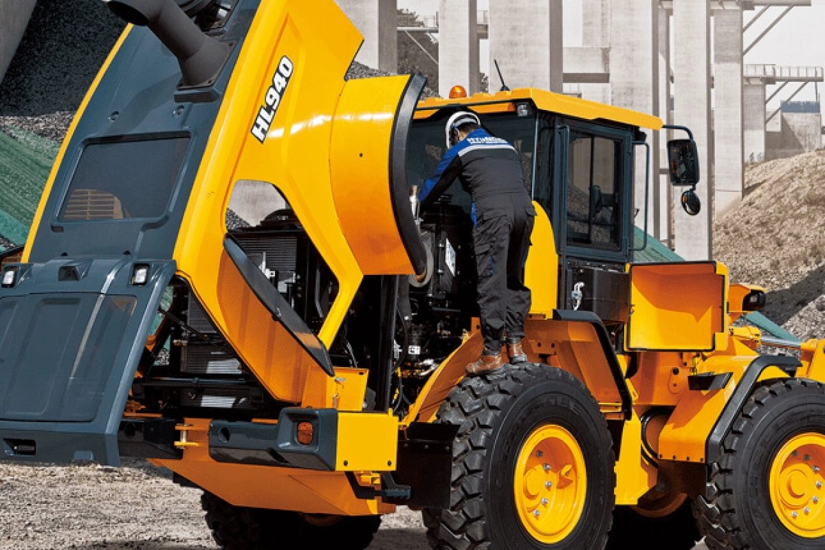 The HL900 series has improved accessibility to the sealed engine room with a tilt-back hood to allow for easy cleaning and maintenance. The engine compartment was designed to prevent any possibility of fire due to contamination. The wide open access when the hood is open also enhances serviceability of the engine and cooling room. New serviceability features in the new A-Series include a Fully Openable Engine Hood.