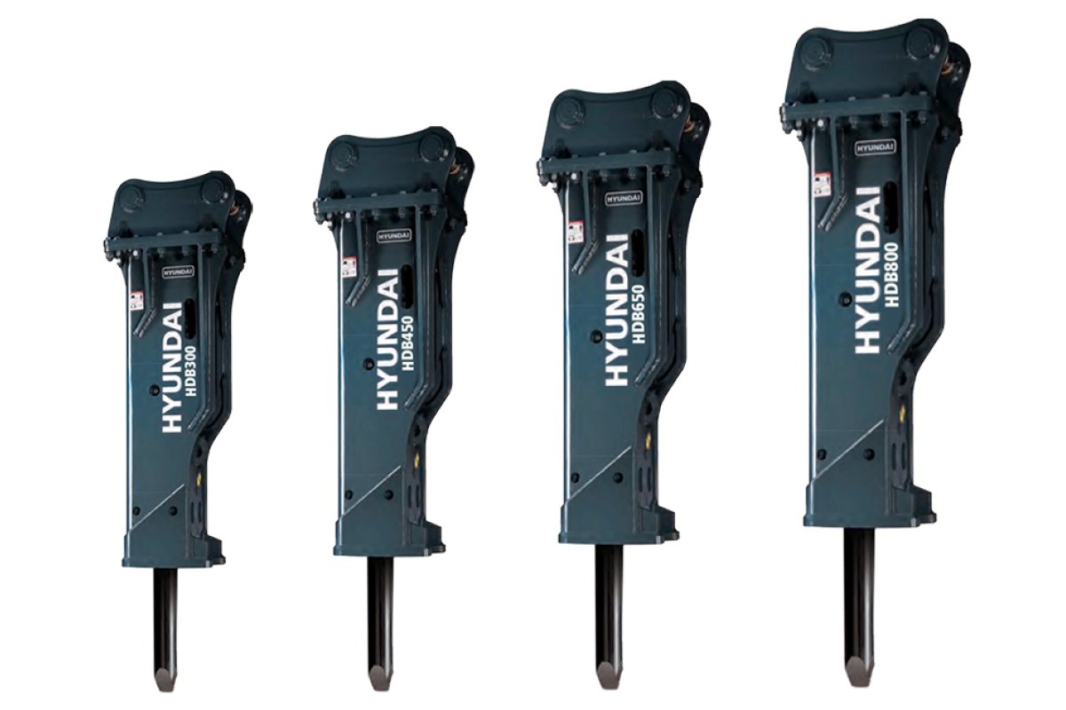 Hyundai large breakers are suited to fit excavators ranging from 30 ton to 80 ton. If equipped on a Hyundai excavator, standard equipped mounting brackets are designed to match up perfectly with the Hyundai linkage. If you would like to use on another brand of excavator, Hyundai dealers can match a custom mounting bracket to fit any machine.